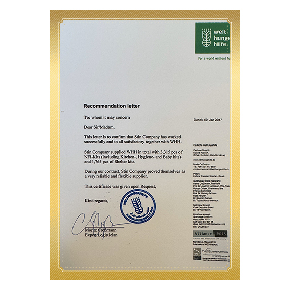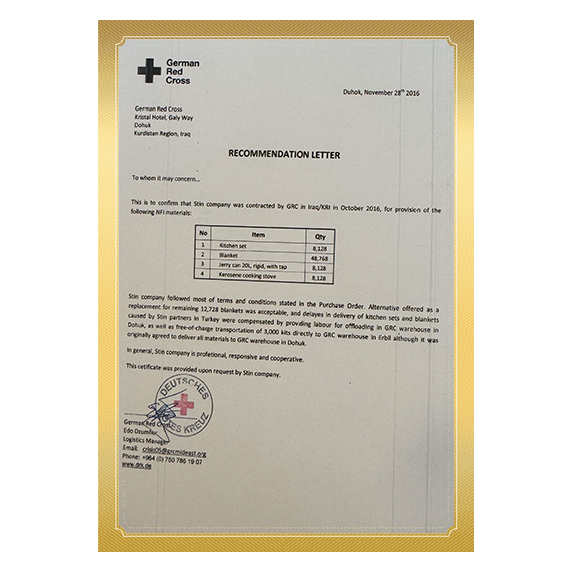 - These certificates ensure that aid items align with international humanitarian standards.
